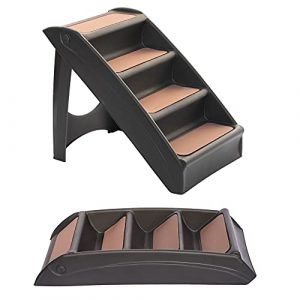 UPP Folding Dog Ramp for Pets up to 30 kg I Dog Steps with Anti Slip Treads I Foldable Pet Aid On Entry & Exit Stairs for Easy Transportation I 38 x 50 x 58 cm (Black)