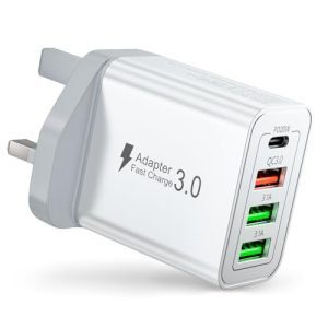 USB C Plug, 40W 4-Port Fast Charger Plug UK, USB C Charger with 20W PD Power Adapter+QC 3.0+Dual USB, Multi Mains Wall Charger Type C Charging Plug for iPhone Series, Samsung, iPad, AirPods,Watch, PS5