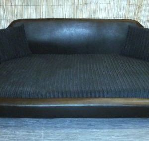Zippy Faux Leather Sofa Dog Bed – Large – Black/Black Jumbo Cord