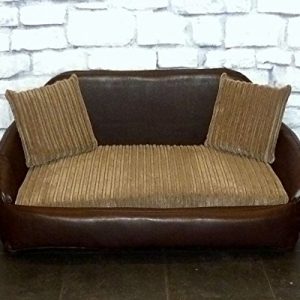 Zippy Faux Leather Sofa Dog Bed – Large – Brown & Mocha Jumbo Cord
