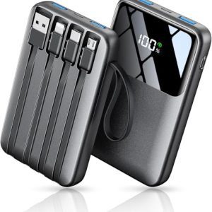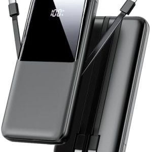 Power Bank Fast Charging 15000mAh, Portable Charger with Built-in Cables, USB-C Powerbank with LED Display & 4 Outputs, Battery Pack Compatible with iPhone 16 15 14 13 Android and more, Black