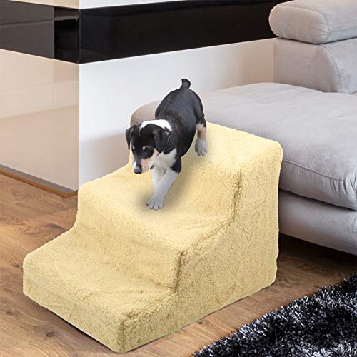 D2B Lightweight Pet Dog 3 Steps Stairs Portable Pet Ladder Ramp with Soft Plush Washable Cover