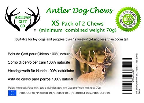 ARTISAN GIFT CO Naturally Shed 100% Natural Premium Deer Antler Chew for Dogs (XS – 2 Units)