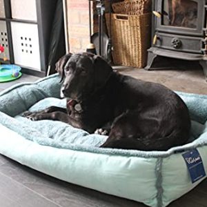 Wolfybeds Large Padded Luxury Fleece Dog Bed Limited Edition in turquioseoceans (36″ x 24″) washable covers