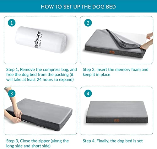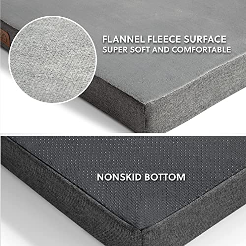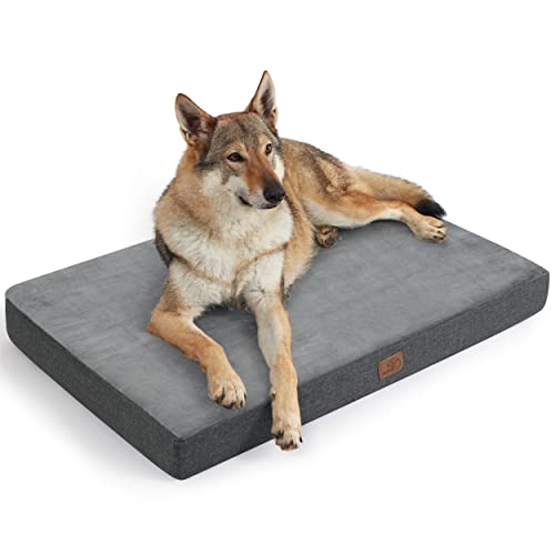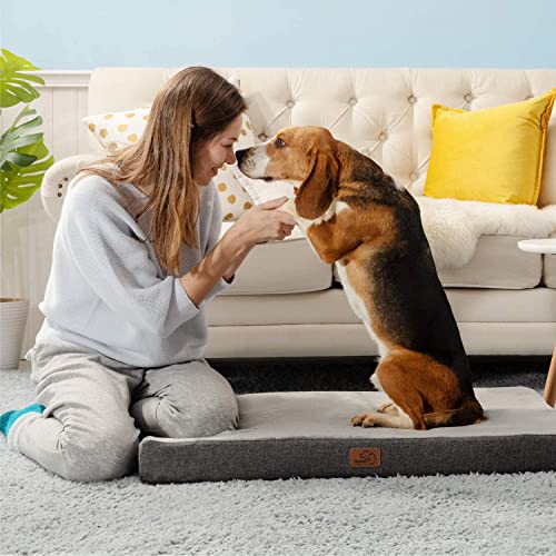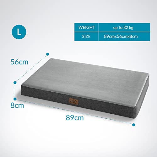 Bedsure Memory Foam Dog Bed Large – Orthopedic Mattress for Crate with Removable Washable Cover, Water-Resistent Flat Dog Bed for Human, Grey, 89x56cm