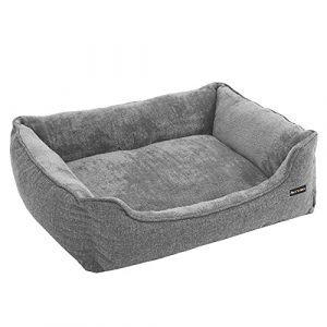 FEANDREA Dog Bed, Linen-Look Pet Bed, Dog Sofa Bed with Raised Edges, Non-Slip Bottom, Removable Washable Cover, L, for Medium Dogs, 90 x 75 x 25 cm, Light Grey