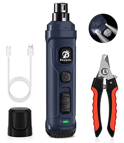 Bousnic Dog Nail Grinder and Clipper Kit – 2-Speed & 2 LED Lights Electric Rechargeable Pet Nail Trimmer Painless Paws Grooming & Smoothing for Small Medium Large Dogs & Cats