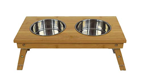 EASY CLEAN & NON-SLIP FEET: The natural bamboo finish is easy to wipe clean and water resistant. The feet are fitted with a slip-resistant material and the legs have locking bars to hold them in place,. We all know how our pets can be at feeding time!
