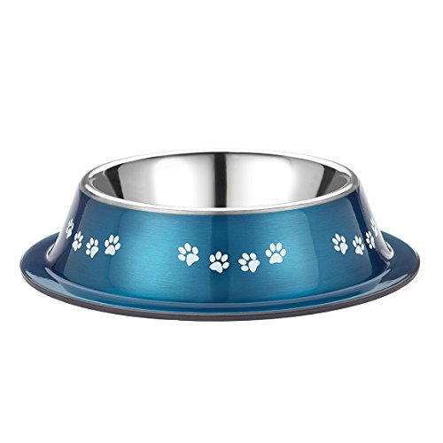 Hing Designs The Bone Bowl with Non Slip Rubber Feet and Dishwasher Safe Removable Stainless Steel Bowls, Blue