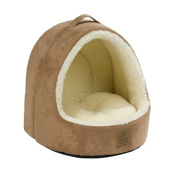 Deluxe House of Paws Hooded Faux Suede & Faux Sheepskin Cat Bed