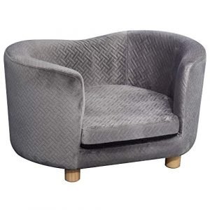 PawHut Pet Sofa Couch Dog Cat Wooden Sponge Sofa Bed Lounge Comfortable Luxury w/Cushion, Grey