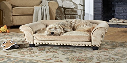 Dog Sofa Dog Bed with Extra Thick Soft Cushion (with Zip) for Deep Relaxing Sleep Wooden Frame Dream Catcher Design Beige Length 74 cm, Width 42 cm, Depth 28 cm
