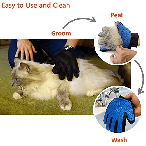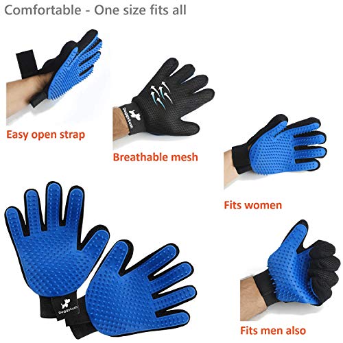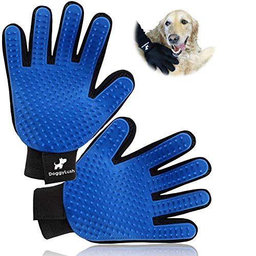 DoggyLush Pair of Pet Grooming Gloves. Upgraded 259 Silicone Tips in Each Pet Grooming Glove/Deshedding Glove. Ideal for a Cat or a Dog. Work on Wet/Dry and Long/Short Fur (Blue)
