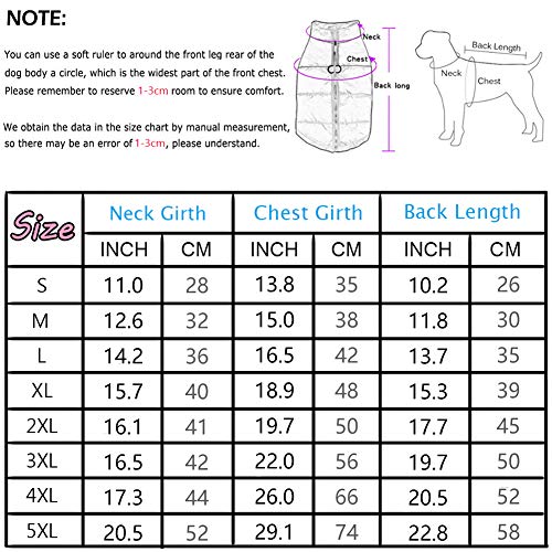 Warm Note: The size of dog clothing is not universal. We recommend that you measure the chest and neck girth of your dog before purchasing, then choose the perfect size according to our size chart. To ensure comfort when wearing, please reserve 1-3cm room.