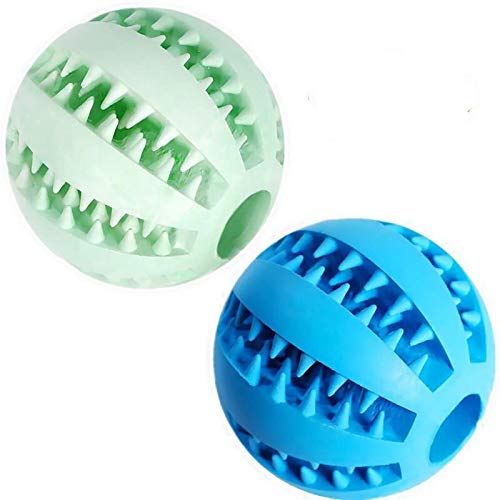 Feixun Pets Dog Treat Toy Ball, Rubber Dog Food Ball,Dog Tooth Cleaning Toy Ball, Interactive Dog Toys Pack of 2