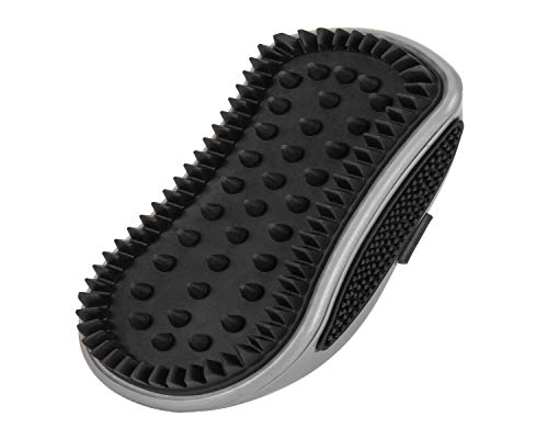 Moulded rubber teeth massages skin to help distribute natural oils that promote coat health and shine