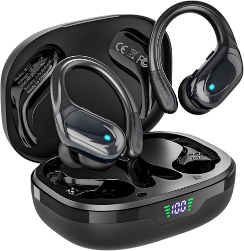 HAOYUYAN Wireless Earbuds, Sports Bluetooth Headphones, 80Hrs Playtime Ear Buds with LED Power Display, Noise Canceling Headset, IPX7 Waterproof Earphones for Workout/Running (Black)