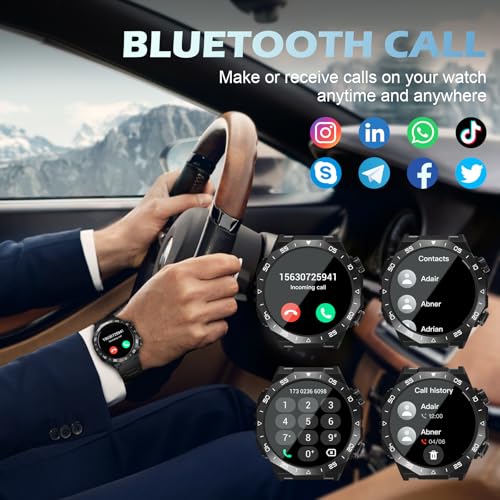 2025 New Bluetooth Calls and Smart Notifications: The smart watch for men is equipped with a powerful speaker and high-resolution microphone. Once connected to your smartphone via Bluetooth, it allows you to make and receive calls directly from your watch. The smartwatch’s notification function can receive text messages, schedule notifications, and app messages (WhatsApp, Facebook, Instagram, etc.) in real time, reminding you with vibrations, ensuring that important information is always available and no key content is missed.