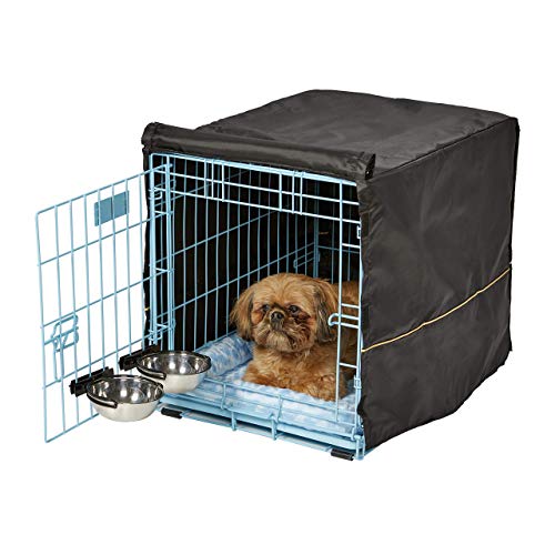 MidWest Homes for Pets iCrate Dog Crate Starter Kit, 24 Inch Dog Crate Kit Ideal for Small Dog Breeds (weighing 13 – 25 Pounds), Includes Dog Crate, Pet Bed, 2 Dog Bowls and Dog Crate Cover (Blue)