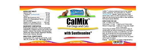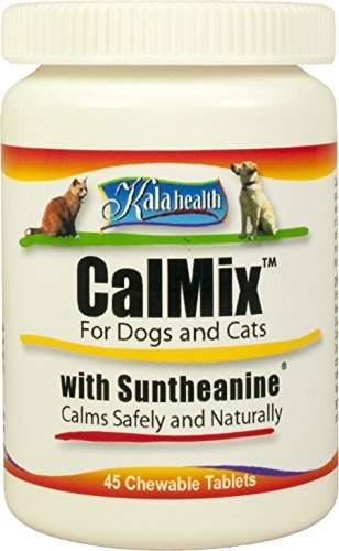 Kala Health – Calmix for Dogs and Cats – Contains L-Theanine (Suntheanine), Valerian Powder, Taurine and other Calming Ingredients- This Natural Supplement Helps Calm Nervous Pets, Reduces Stress and Anxiety thereby Promoting Relaxation and Calming Behavior – Available as 45 Chewable Treat-Like Tablets.