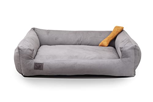 LUVLY Pets Luxury Dog Bed – Orthopaedic Memory Foam Filling Cushion – Washable and Removable Cotton Cover – Non Slip – Dog Sofa – Chew Resistant – Chew Toy as Gift – Handmade (XL 100x80cm, Grey)