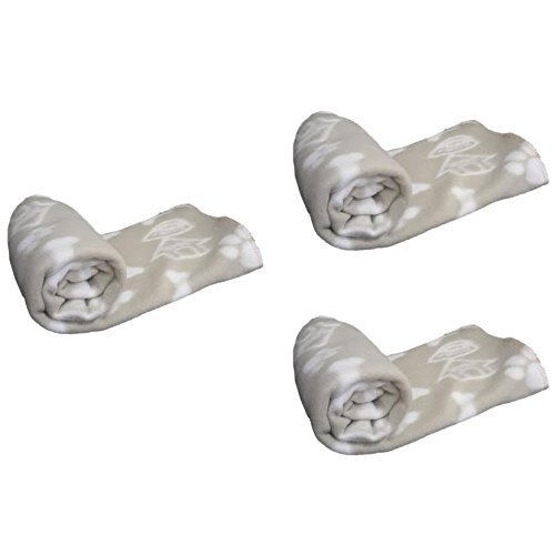 West5Products 1x Super Soft Micro Fibre Paw & Bone Print Design Small Pet Dog Blanket 70x100cm, grey or beige
