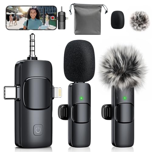 Wireless Lavalier Microphone for iPhone Android,2 Mini Lapel Microphones for Video Recording/LiveStream/YouTube/Online Meeting/TikTok (Black)
