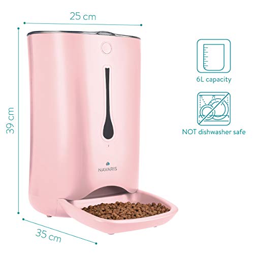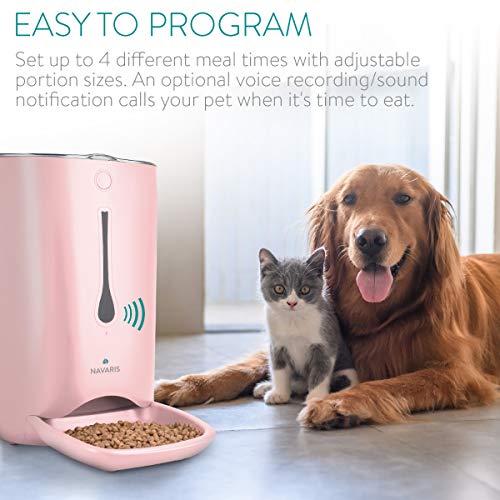 Navaris Automatic Food Dispenser with Timer – 6L Automatic Feeder for 4 Servings of Daily Food – for Dogs and Cats