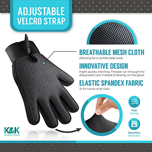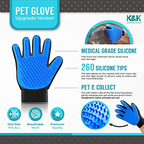 KENNELS & KATS Pet Grooming Glove | Pet Brush Glove | Premium De-shedding Glove for Easy, Mess-free Grooming with 260 Tips | Grooming Mitt For Dogs, Cats, Rabbits & Horses with Long/Short/Curly Hair