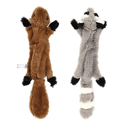 Nollary Dog Squeaky Toys No Stuffing, Soft Squirrel and Raccoon Plush Toys with Squeaker for Dogs Avoid Boredom, 16 inch, Pack of 2