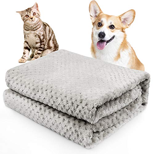 Onarway Dog Blanket Washable Medium 70x100cm Puppy Blanket, Fluffy Fleece Pet Blanket Throw for Puppy Dogs, Cats and Other Small Medium Pets Grey