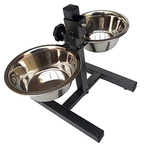 Paw Prints Double Stainless Steel Dog Bowls, With Stand, Height Adjustable, Food Water
