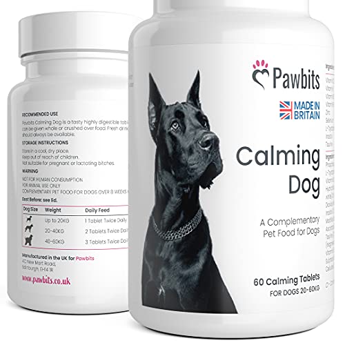 Pawbits Calming Tablets Supplement for Anxious & Hyperactive Dogs Calms Relaxes & Non-Sedative Dog Calming Tablets Fireworks, Behavioural Issues, Travel & Vet Visits Natural Calm Aid