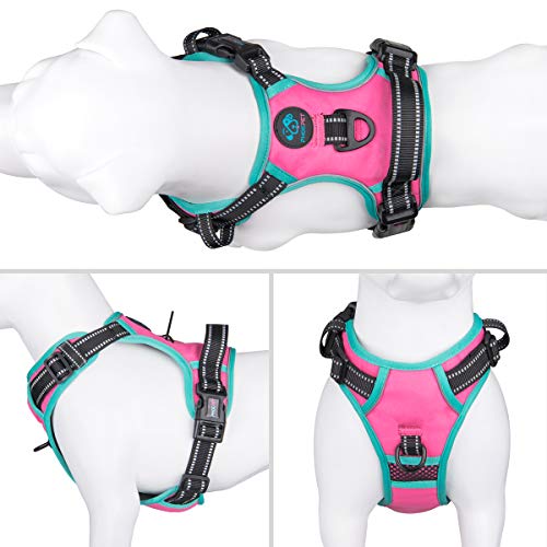 PHOEPET 2019 Upgraded No Pull Dog Harness, Unique Colors Reflective Adjustable Vest, with a Training Handle + 2 Metal Leash Hooks+ 3 Snap Buckles +4 Slide Buckles [Easy to Put on & Take Off]
