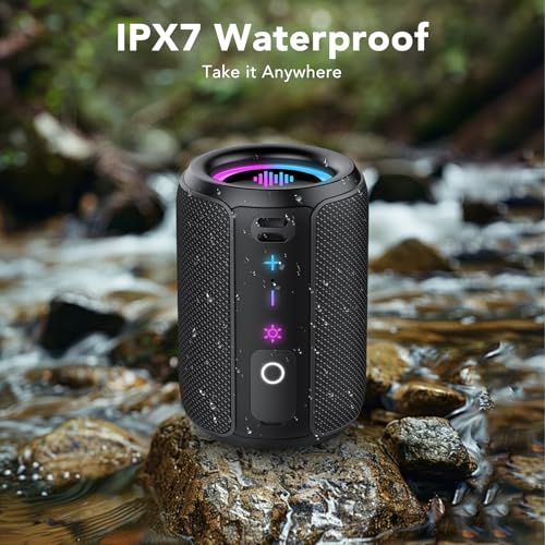 IPX7 Waterproof & Portable Design: Built for adventures, our IPX7 waterproof Bluetooth speaker boasts IPX7 rating—survives rain, spills, or even brief submersion. The rugged, portable wireless speaker is lightweight yet durable, ideal for beach trips, camping, or outdoor workouts. Its compact size fits in backpacks effortlessly, so you can take crisp stereo sound anywhere.