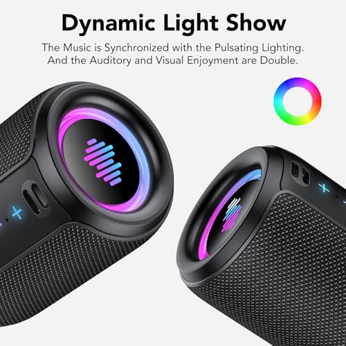 Portable Bluetooth Speaker Wireless with Stereo Sound & Mic for Calls, Bluetooth 5.4 Speaker with 12H Playtime, 6 RGB Lights & TWS Pairing, IPX7 Waterproof Outdoor Speaker for Home, Hiking, Party