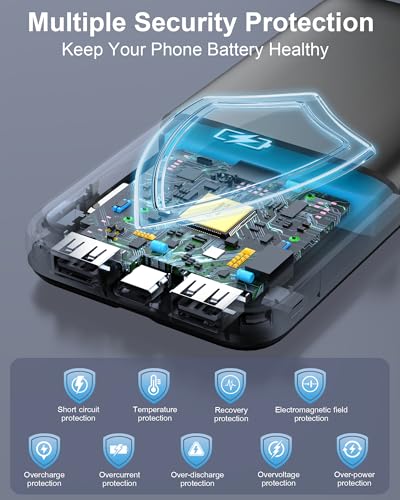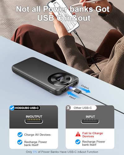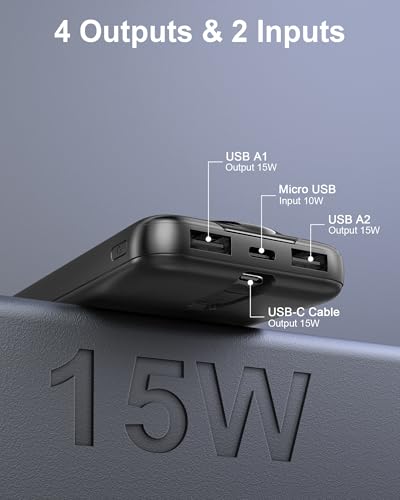 Power Bank Phone Battery PaCharge Multiple Devices at Once: The battery pack equipped with 1*USB-C (5V/3A) input/output port, 1*Micro USB (5V/2A) input port, and 2*USB-A (5V/3A) output ports, our power bank can charge 3 devices at the same time, which is suitable for most electronic devices on the market such as mobile phones, headphones, tablets, etc. Powerful powerbank for iPhone 15 14 13 Plus Pro Max Mini Samsung Xiaomi Air Pods iPad and more. You can share it with your friends and families.ck with USB C Input & Output PowerBank Triple