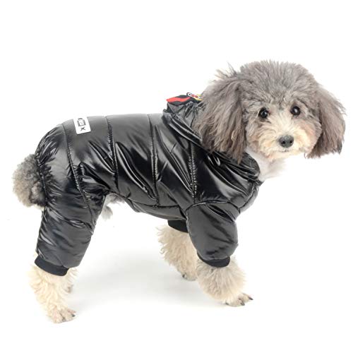 Ranphy Waterproof Dog Snowsuit Jumpsuit Fleece Lined Winter Coat with Hood Puppy Clothes Outfit Padded Hoodie Jacket Boy Girl Parka for Small Dog Cat