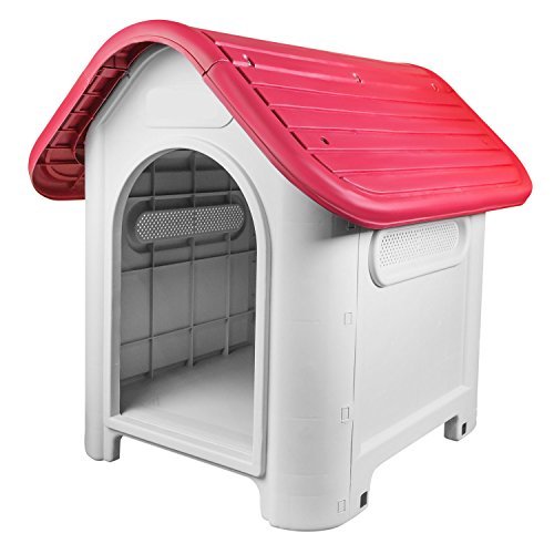 RayGar Plastic Dog Cat Kennel House Weatherproof for Indoor and Outdoor Pet Shelter – Red