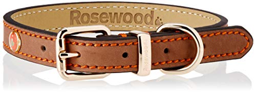 Rosewood Luxury Leather Dog Collar, Brown,14 – 18-inch