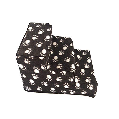 SavingPlus 3 Steps Portable Dog Puppy Ladder Doggy Pet Soft Stairs Black Paws UK