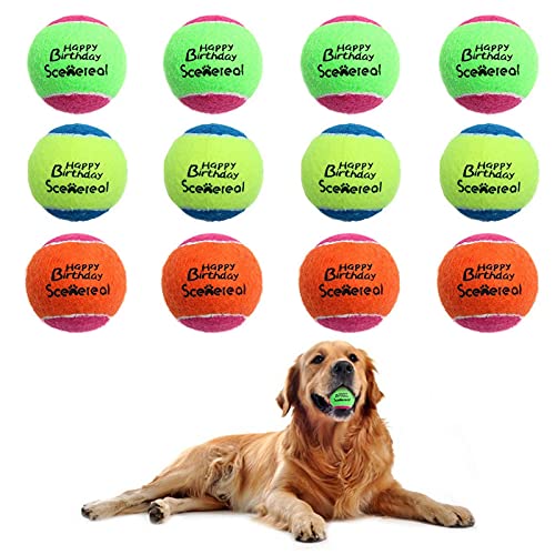 Scenereal Squeaky Tennis Balls for Dogs 12 Packs, Dog Ball Toys 5cm for Dog Training Exercise, Interactive Dog Bouncing Balls for Small Medium Dogs Puppies