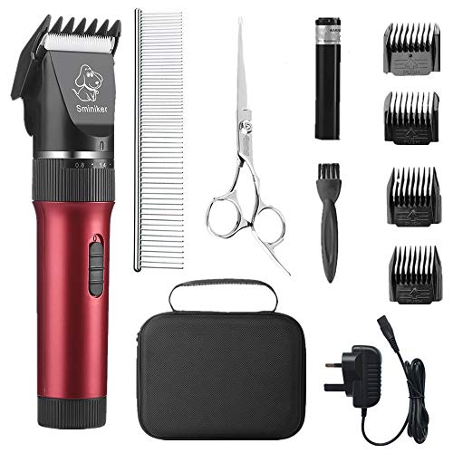 Sminiker Dog Clippers Low Noise Dog Grooming Kit Rechargeable Pet Clippers Cordless Dog Clipper Professional Dog Trimmer Suitable for Dogs,Cats and Other Pets(Red)