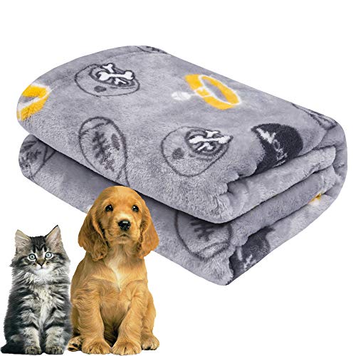 softan Pet Blanket, Fluffy Dog Bed Blanket, Super Soft Bed Cover for Puppy and Kitten, Washable and Warm Animal Blanket for Small Medimu Dog, Cute Print Design for Pet Gift Ideas, 80 ×100cm, Grey