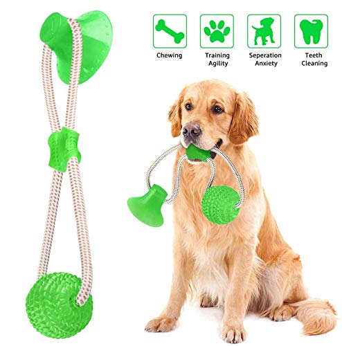 Olgaa Dog Rope Ball Pull Toy with Double Suction Cup Teeth Cleaning Dog Chew Tug Toys for Boredom Tug of War Slow Feeding and Training