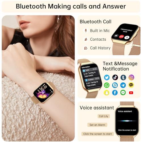 Bluetooth Calls & AI Voice Assistant: Keep attached quickly. This selection-wealthy Sensible watch girls supports hands-free calling, making sure you by no means miss essential calls at the same time as riding, understanding, or busy at work. Revel in outstanding battery existence even with common calls and voice commands. The integrated AI voice assistant streamlines duties and workout routines, making existence more uncomplicated – simply ask.