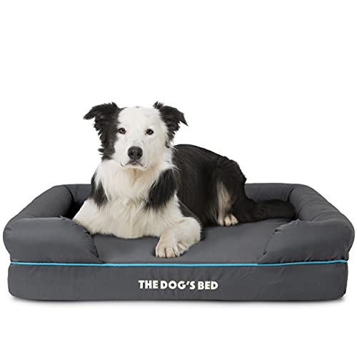 The Dog’s Bed, Premium Orthopaedic Memory Foam Waterproof Dog Bed, Large Grey with Blue Trim, Eases Pet Arthritis & Hip Dysplasia Pain, Therapeutic & Supportive, Washable Quality Oxford Fabric Cover