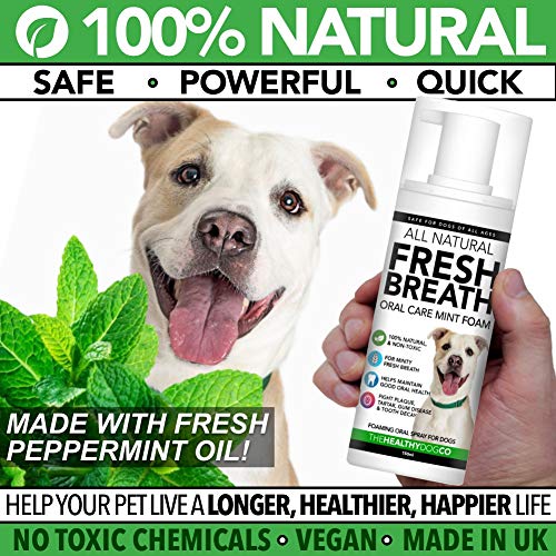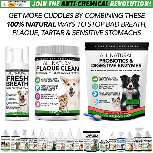 The Healthy Dog Co – Natural Dog Breath Freshener – Fresh Breath Dog Teeth Cleaning – Dog Breath Freshener in Water – Target Plaque Off Dogs and Tartar – Ideal Dog Dental Spray for Bad Breath- 150ml