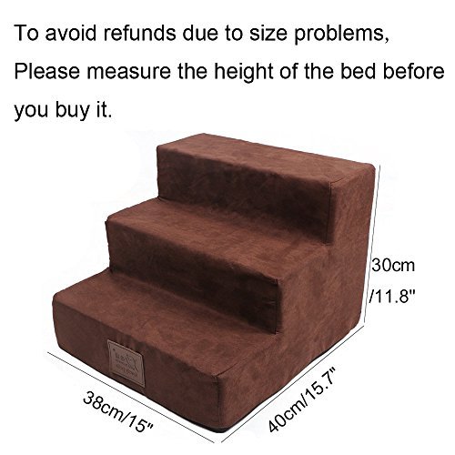 Toparchery 3 Steps Dog Stairs to get on High Bed, Pet Ramp Pet Ladder for Cats Dogs up to 6.6lbs