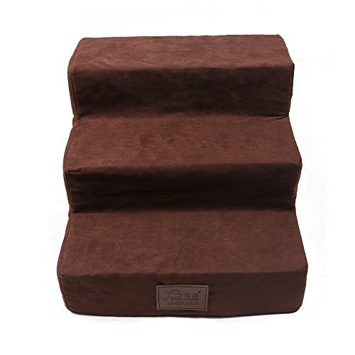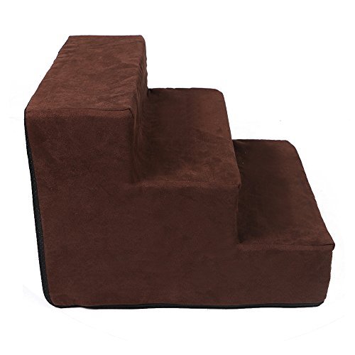amzdeal Dog Stairs 3 Steps Pet Dog Easy Climb Fleece Covered Pet Stairs with Removable cover